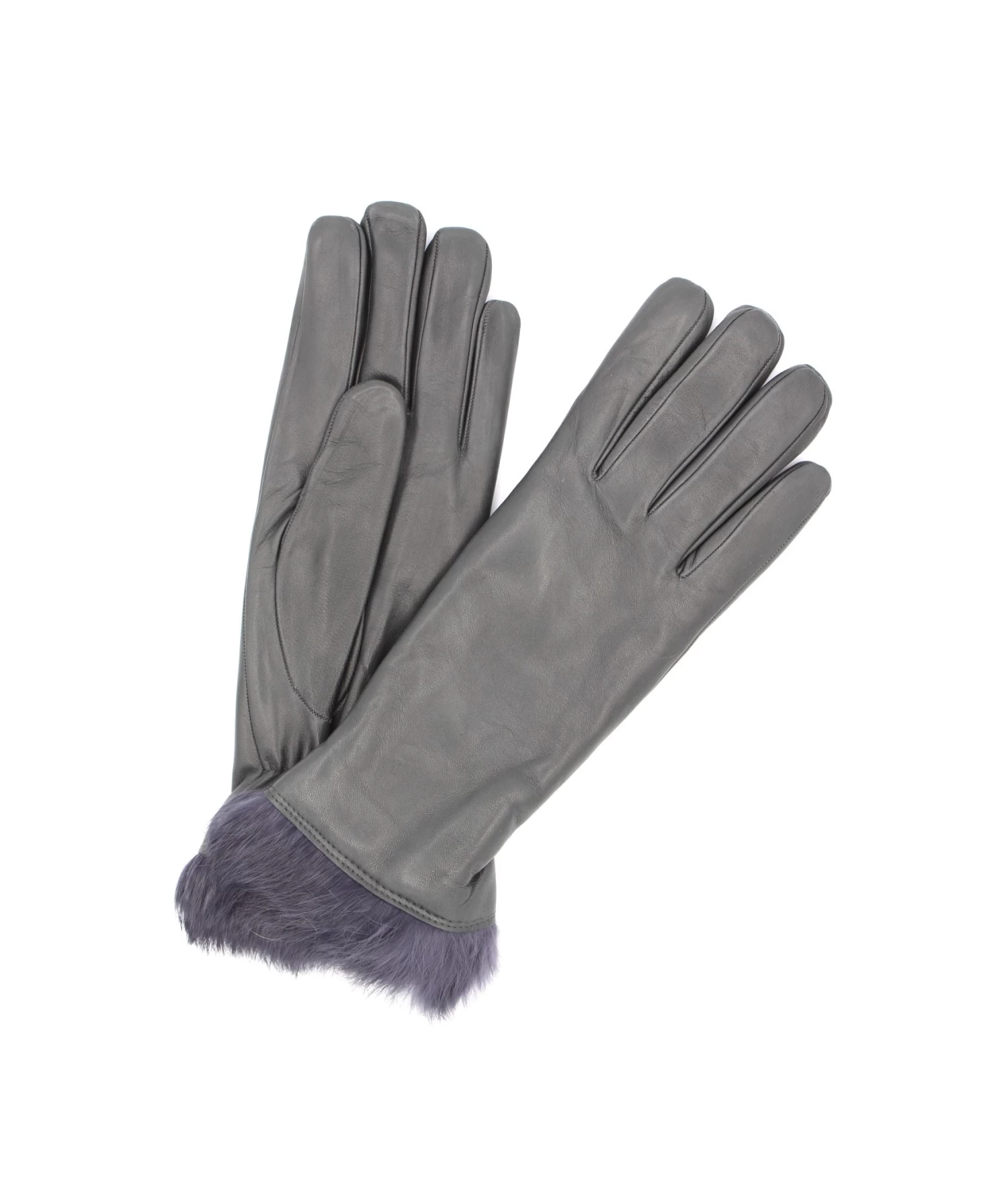 1036 Kid Leather Gloves Rabbit Fur Lined Dark Grey