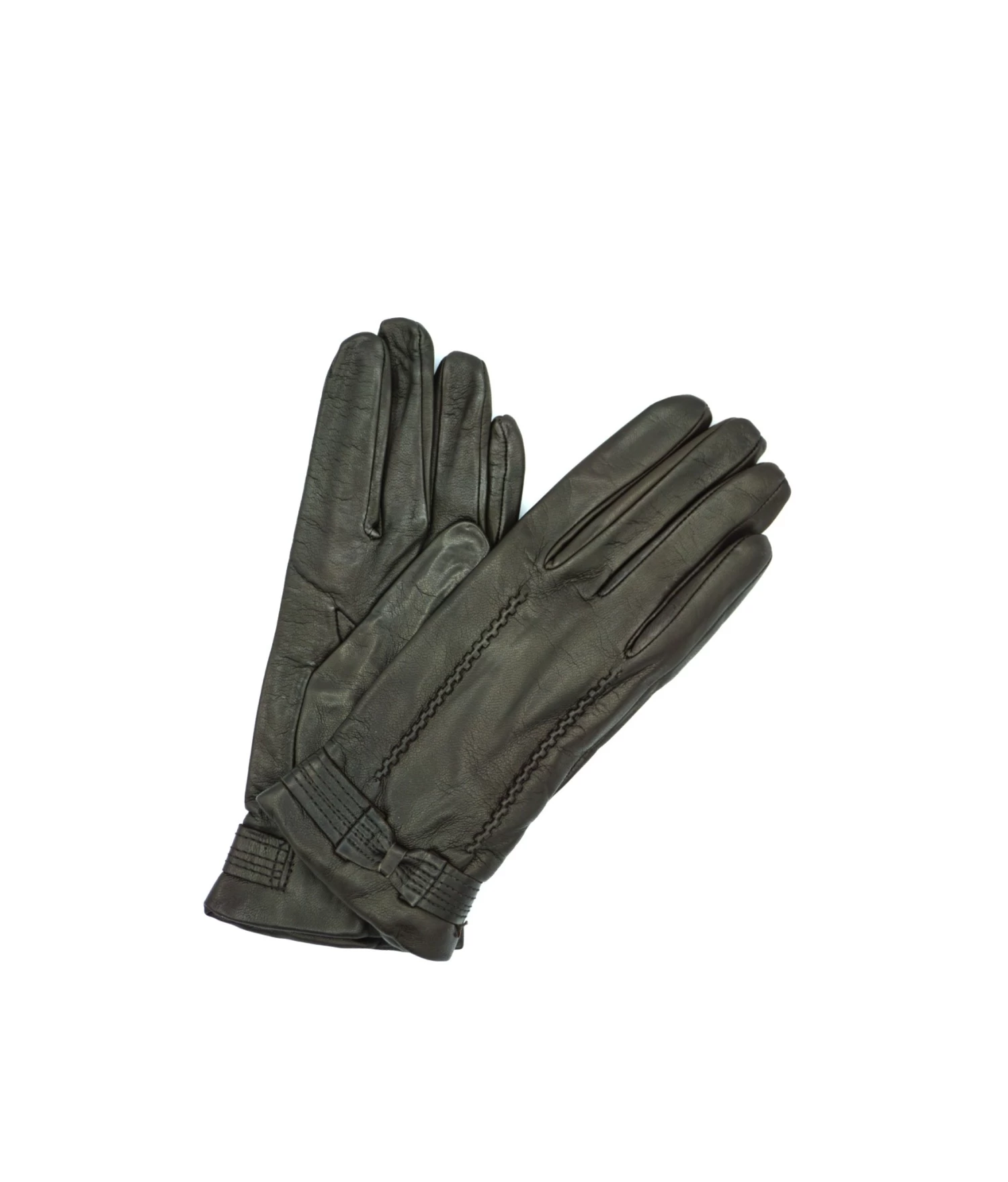 1355 Kid Leather Little Bow On Top Cashmere Lined Black