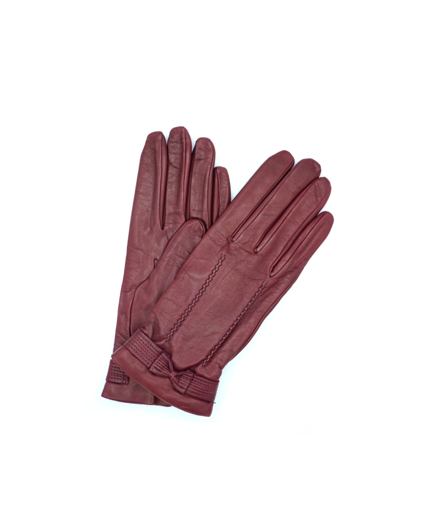 1355 Kid Leather Little Bow On Top Cashmere Lined D. Red