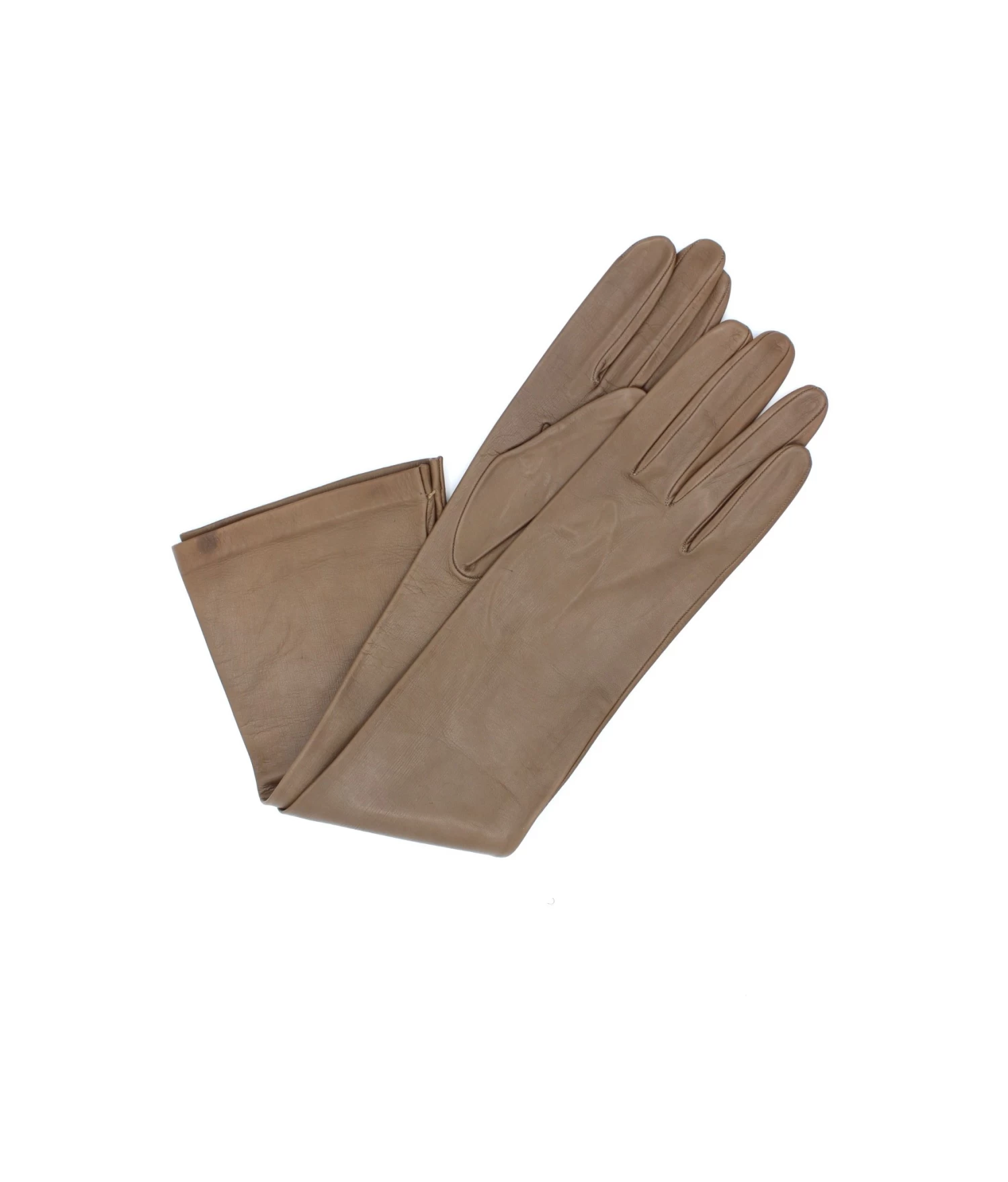 1644 Kid Leather Gloves Silk Lined Elbow Length Mud