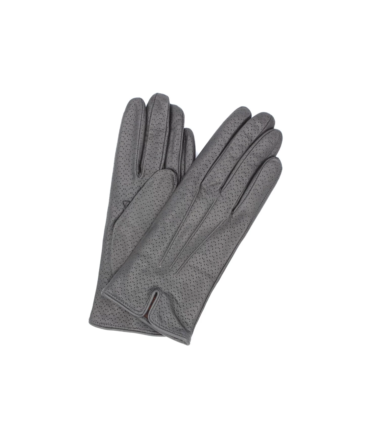 1922 Kid Leather Gloves Cashmere Lined Perf. Dark Grey