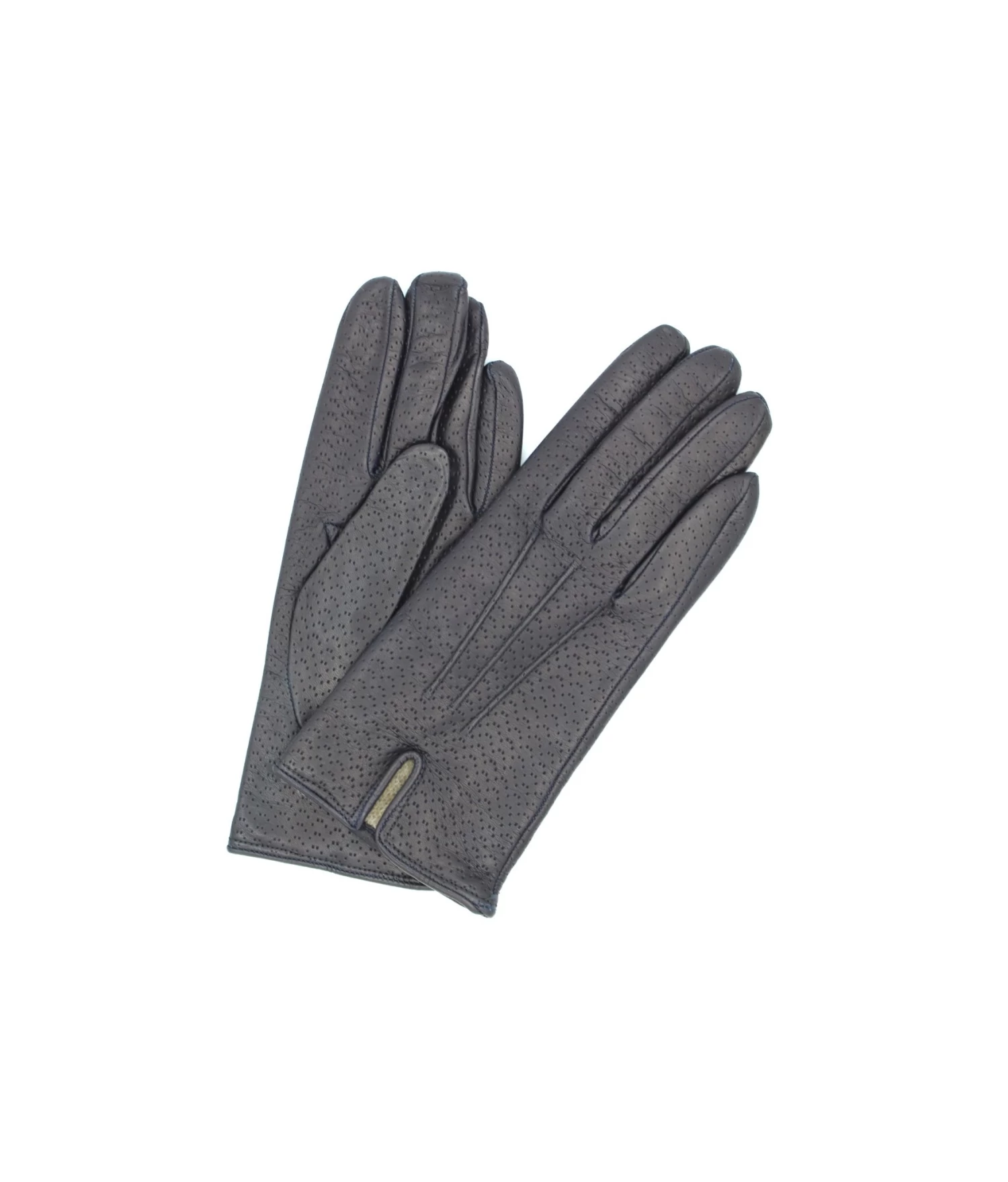 Kid Leather Gloves Cashmere Lined with Perforation Design and Three Rope on Back