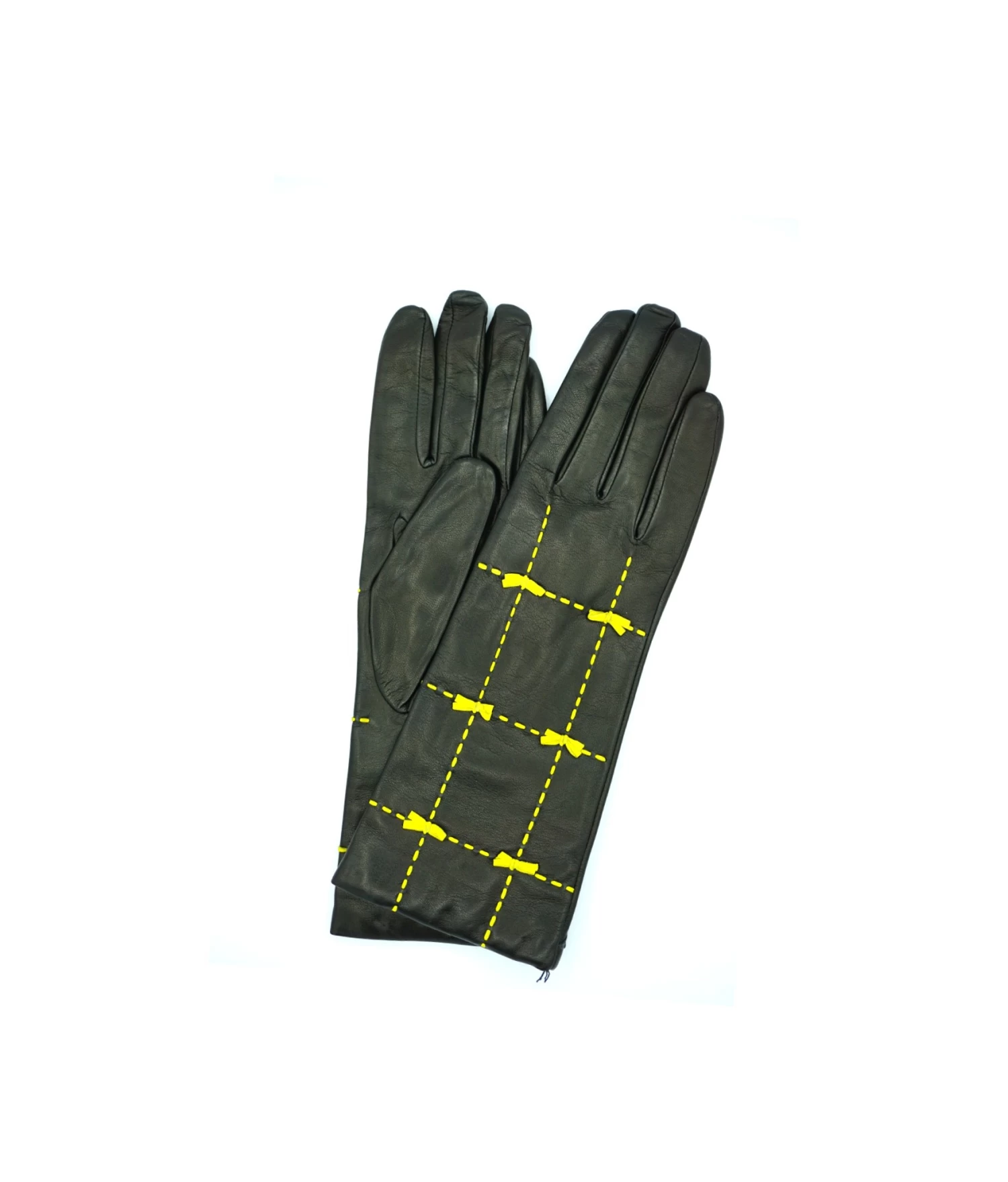 5021 Kid Leather Cashmere Lined Medium Length Black-yellow